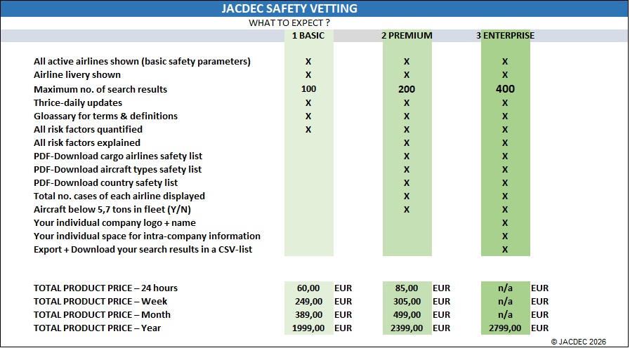 JACDEC is immensely proud to offer you access to our Airline Safety Vetting Tool.